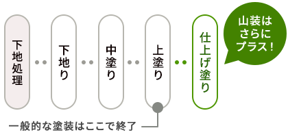 山装では耐久性の高い塗料を使用し、下地処理から丁寧に施工。4回塗り仕上げで長持ちする美しい外観を実現します。